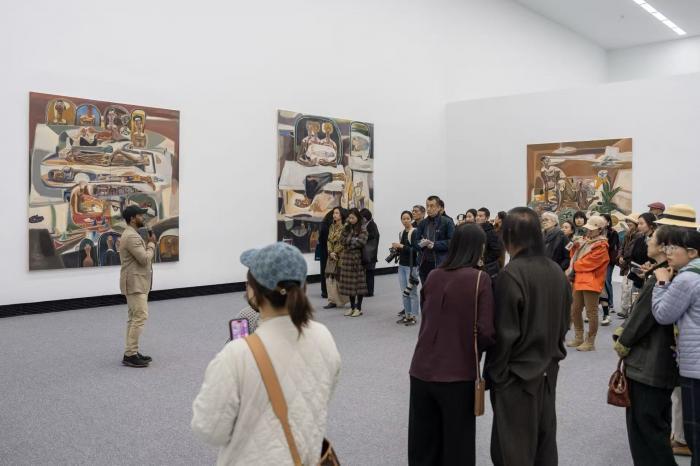 3月21日体育游戏app平台,中国艺术家傅饶大型个展“极光”与埃塞俄比亚艺术家特斯法耶·乌尔盖萨的亚洲首展“原初之径”于红砖好意思术馆同时开幕。 展览由红砖好意思术馆馆长闫士杰策展。展览开幕式的发布会上,嘉宾进行学术对道。 乌尔盖萨先容,为本次展览创作的六联巨幅作品《千里潜之梦》,灵感源于中国传统舞狮,记号着社会的前行是在承载中伸开,力量在静默承担之物中助长。 不雅众赏玩乌尔盖萨的作品。在他的绘图中,室内与田园、闾阎与异域、记念与当下,呈现出一种多维时空解放穿梭的叙事。 开幕式现场,不雅众赏玩